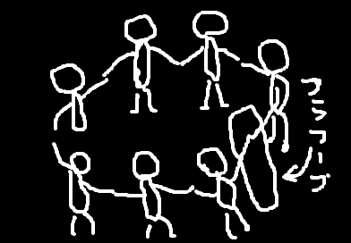 また、それを元の輪に戻した時に、全員が始めと同じ位置にいる事。