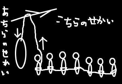ツッキーを輪の向こう側の「あちらの世界」に降ろしたタスクンが「あちらの世界」に来れない。