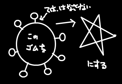一筆書きの五芒星をゴムで形作ること。