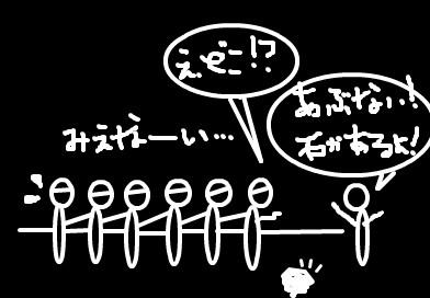 1番前の人だけが目隠しをせずに道案内をする。