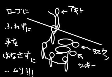 タスクンは頭から落ちることで無事課題を解決したのでした。